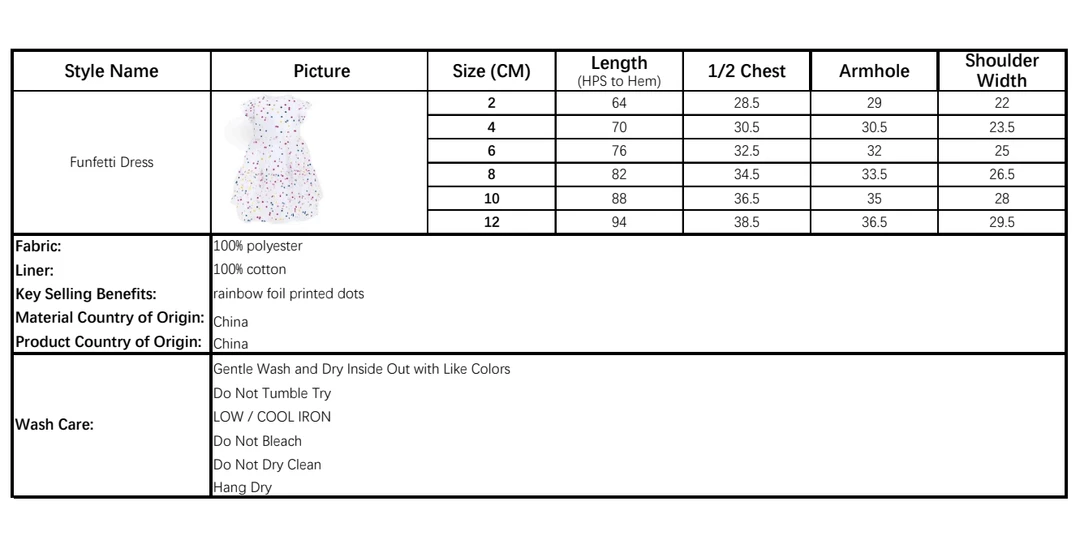 | Size | 2, 4, 6, 8, 10, 12, 14 |