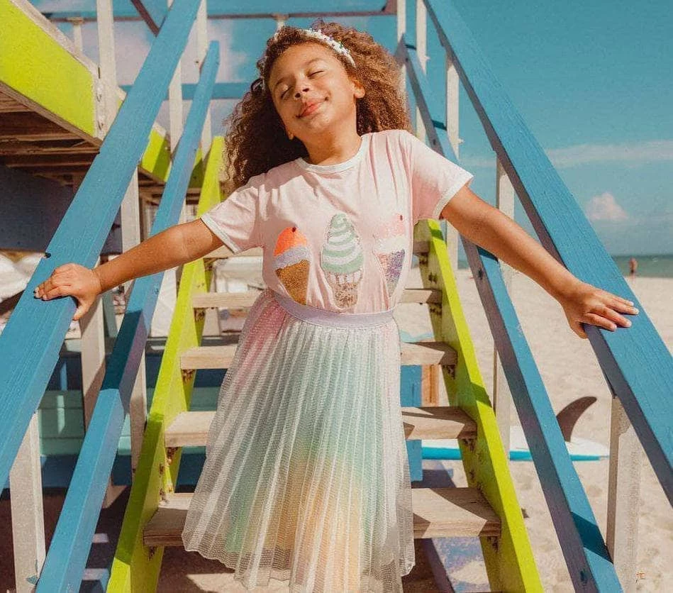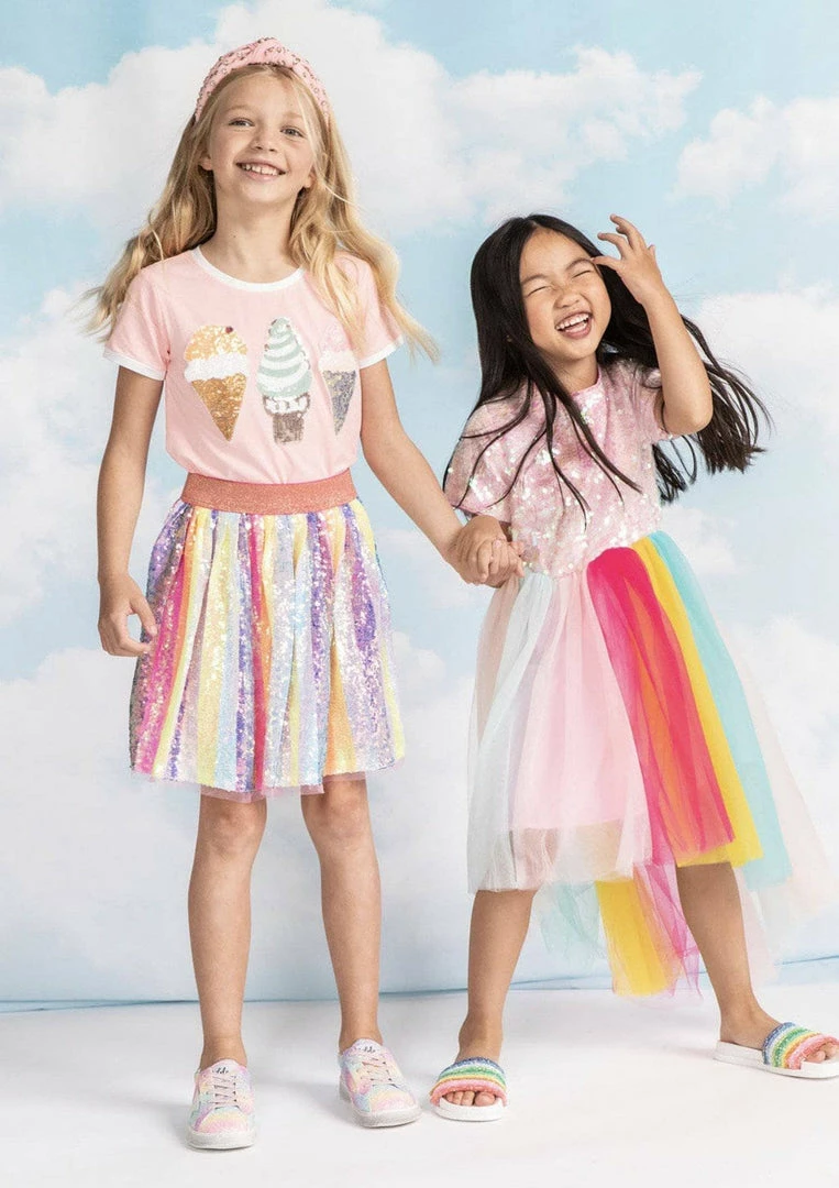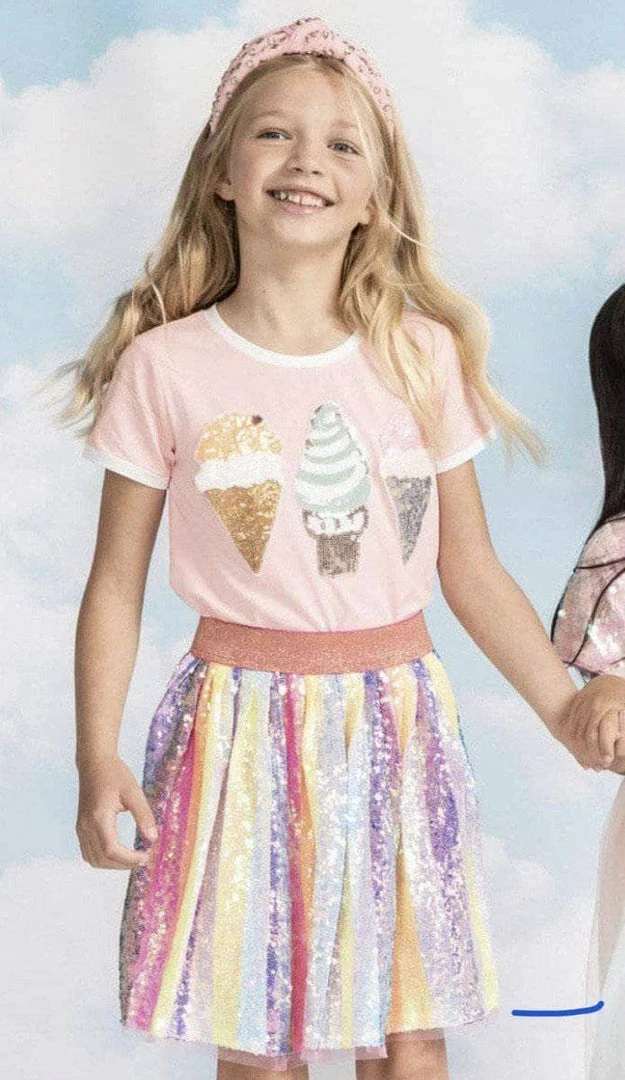 Peachy ringer T-shirt with the cutest sequin ice cream patchesÂ