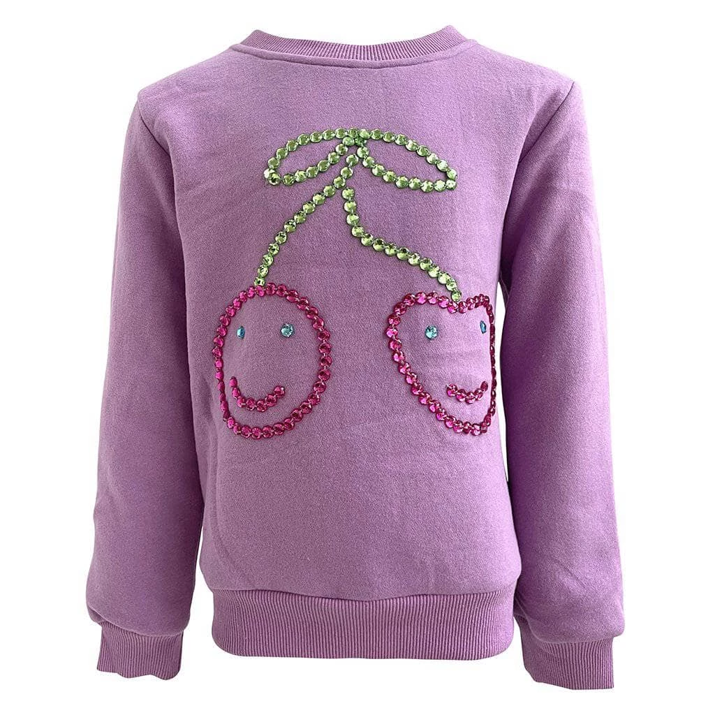 Purple crewneck light weight sweatshirt with smiley cherry gem detail on the front!Â