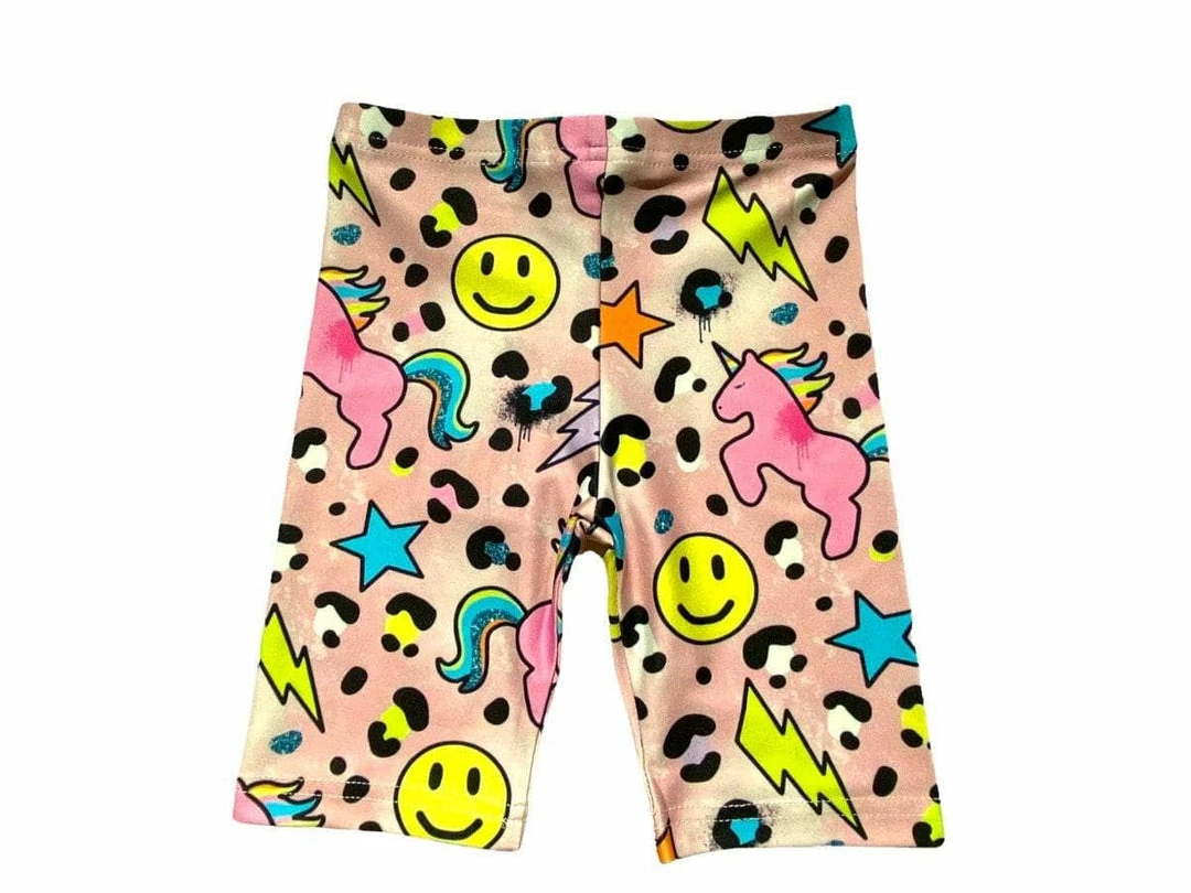 Cute unicorn and emoji printed biker shorts perfect to pair with any tee.