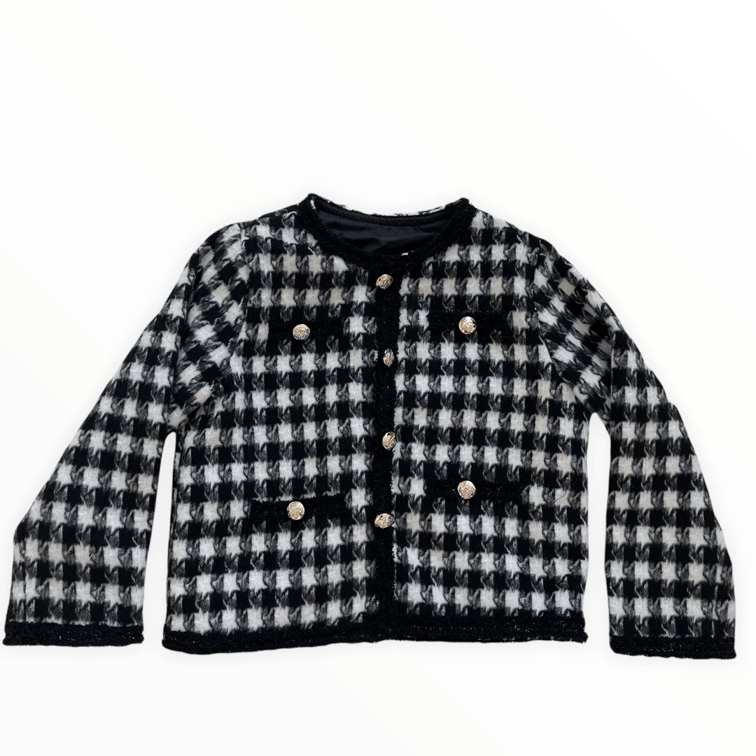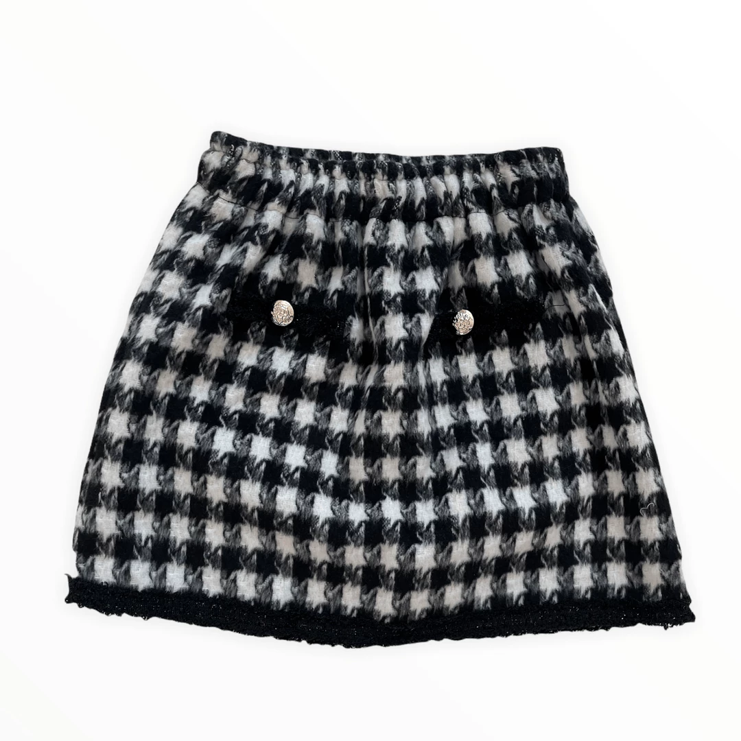 Houndstooth blazer and skirt set embellished with gold buttons!Â