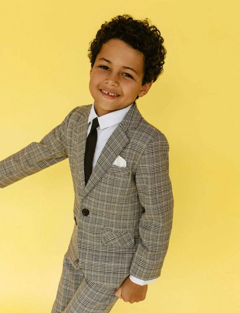 Outfit him for special events in this stylish grey plaid suit with stretch—just in case there’s dancing involved.