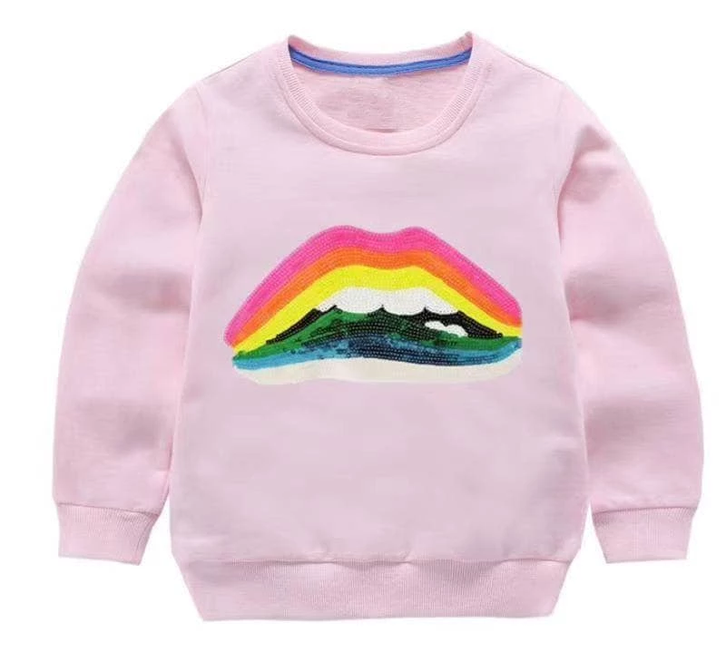 Light pink crew neck sweatshirt with sequin neon rainbow lips!