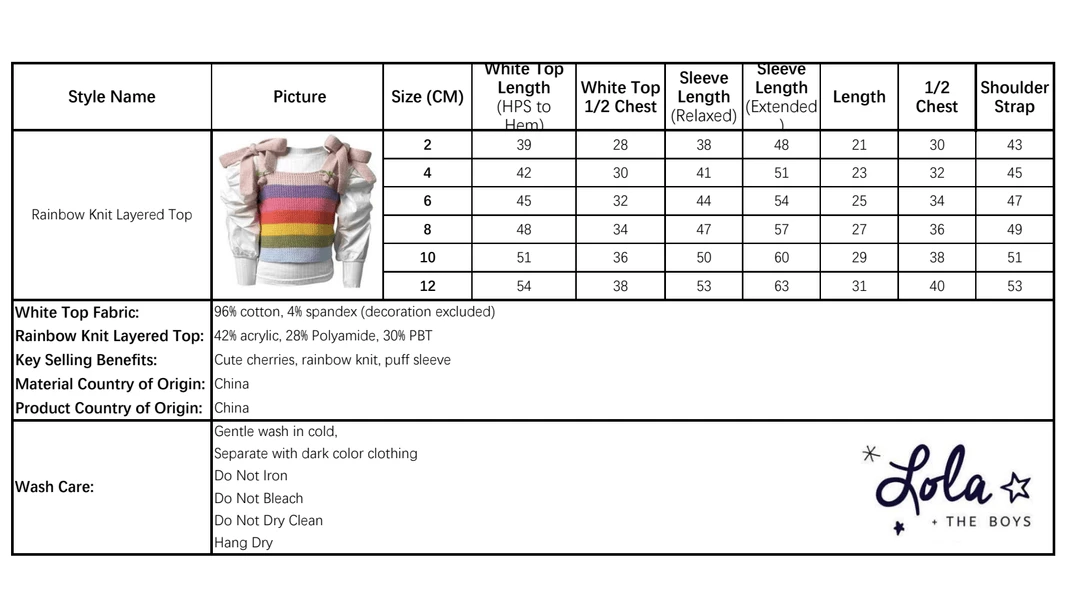 | Size | 12/18 Months, 18/24 Months, 2, 4, 6, 8, 10, 12, 14 |
