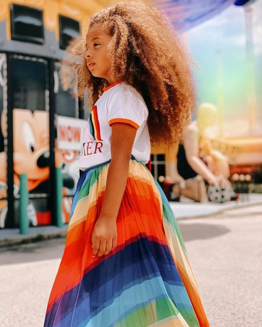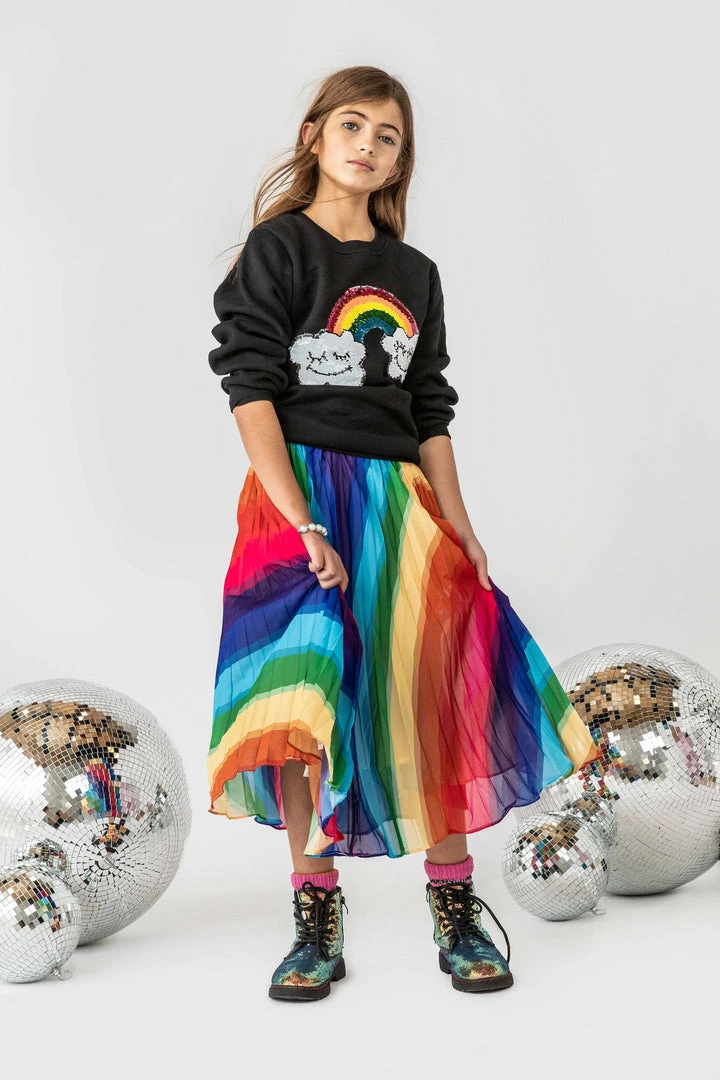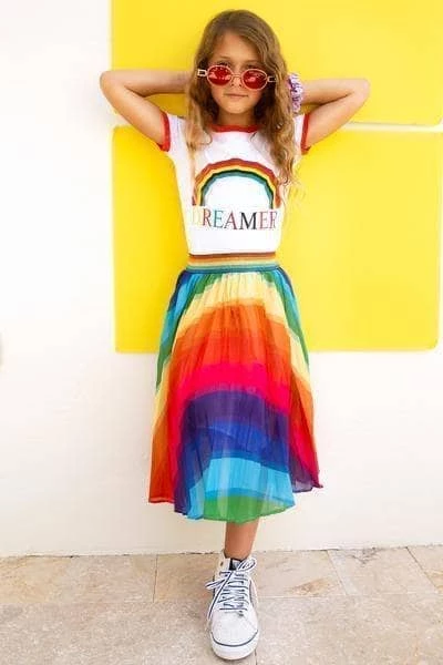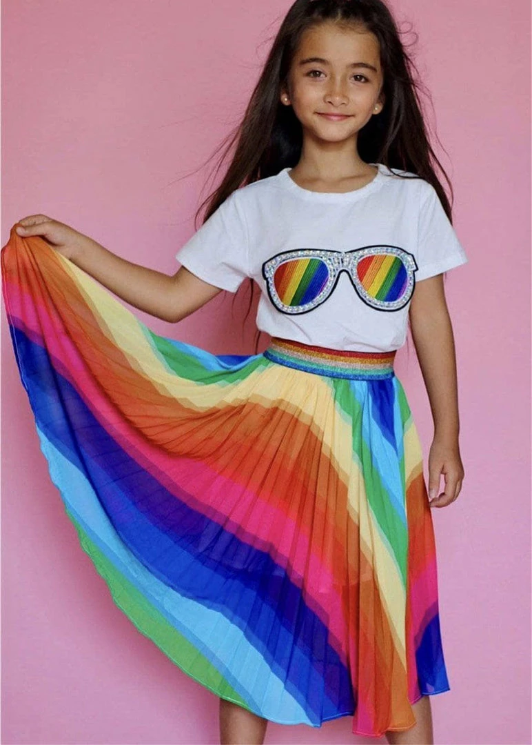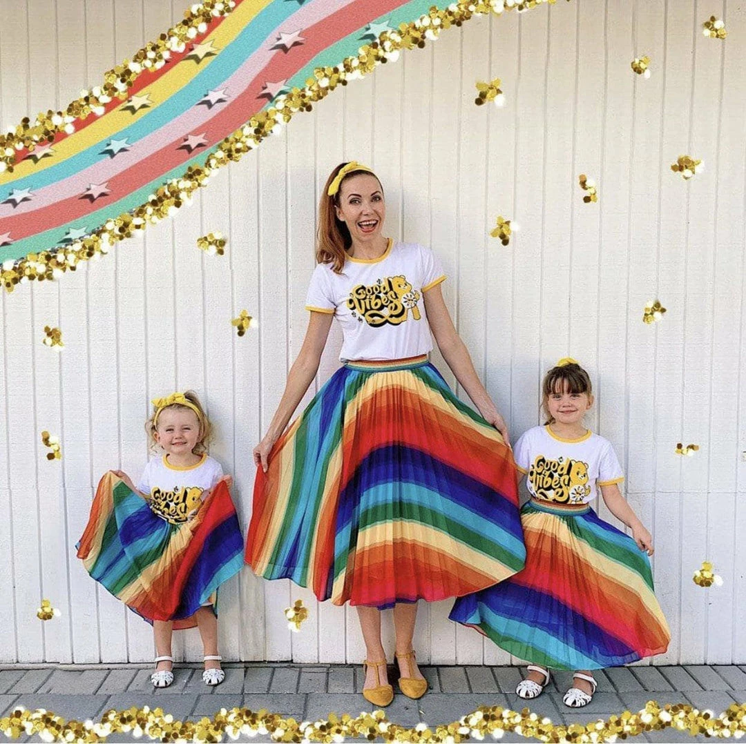 Rainbow twirls! This midi Rainbow skirt is the perfect new spring staple. Rock it paired with our new dreamer teeÂ
