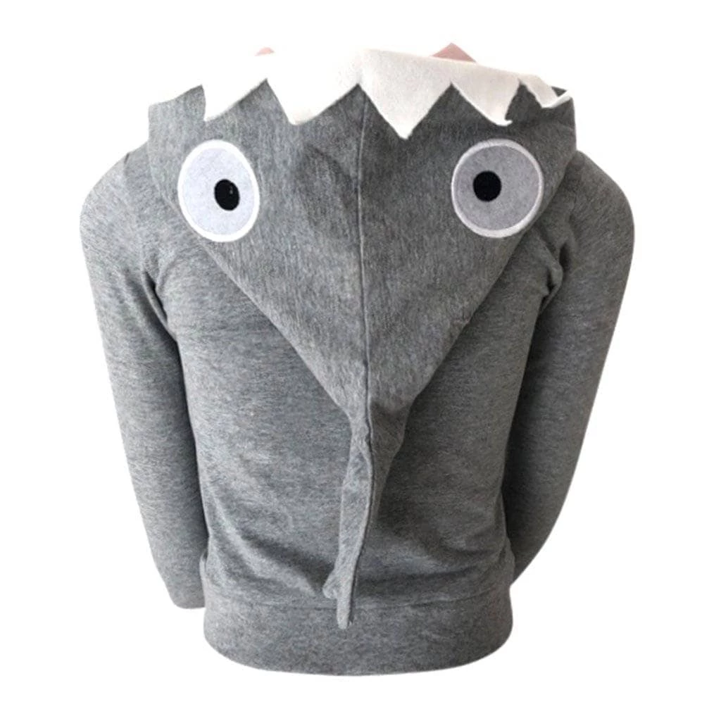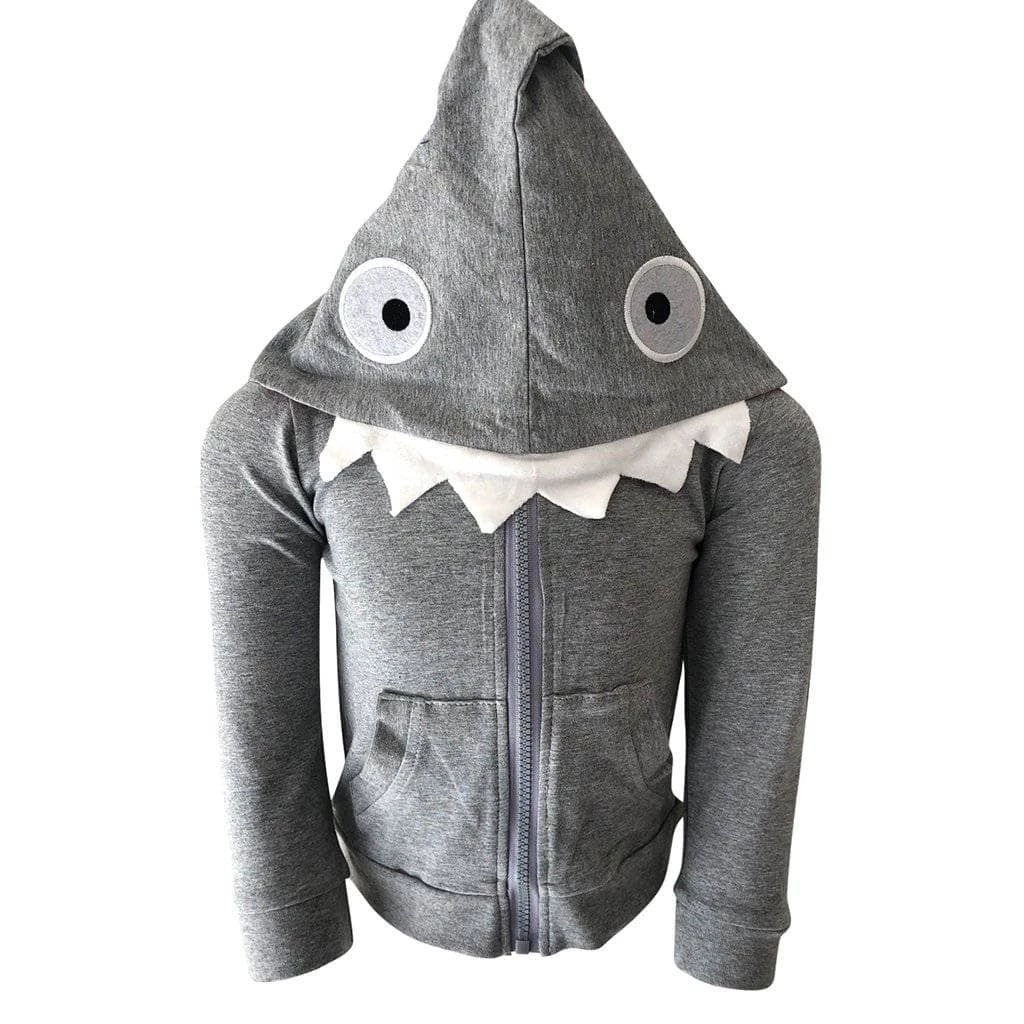 Grey hooded light weight jacket with shark fins and a shark face on the hood!Â