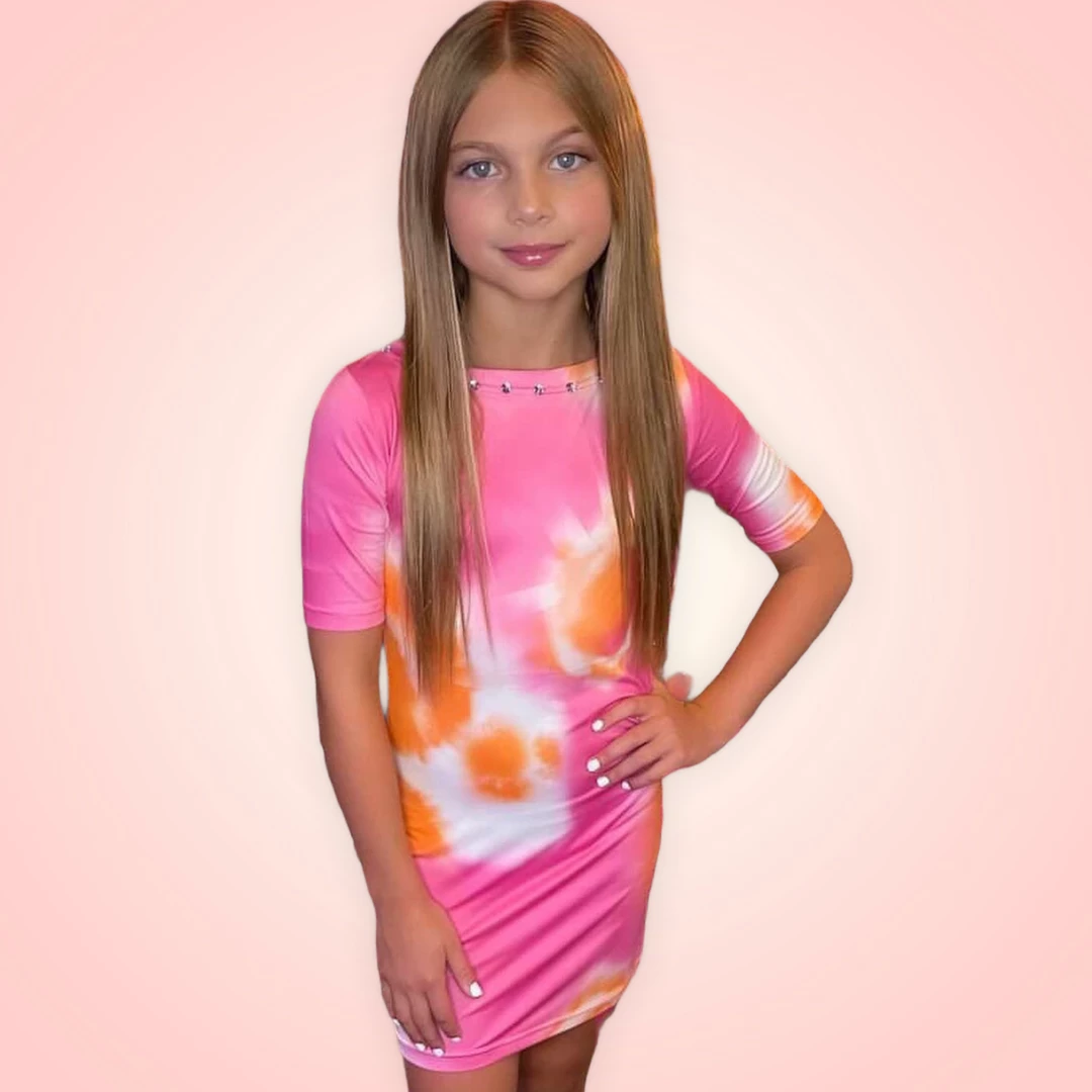 Super stretchy and light weight fitted tie dye swirl dress! Perfect cover up for a summer day!Â