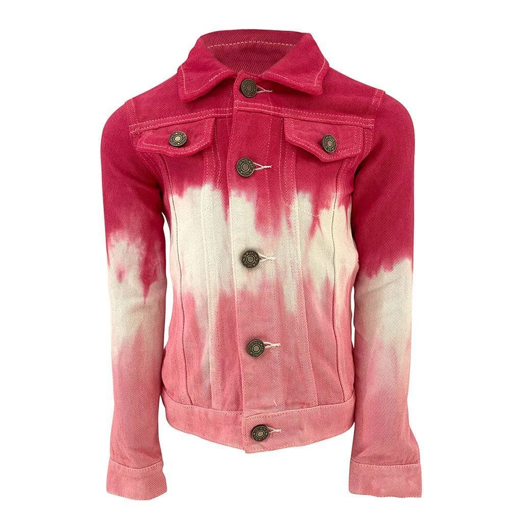 Pink ombre tie dye denim jacket with star lips sequin patch on the back!Â