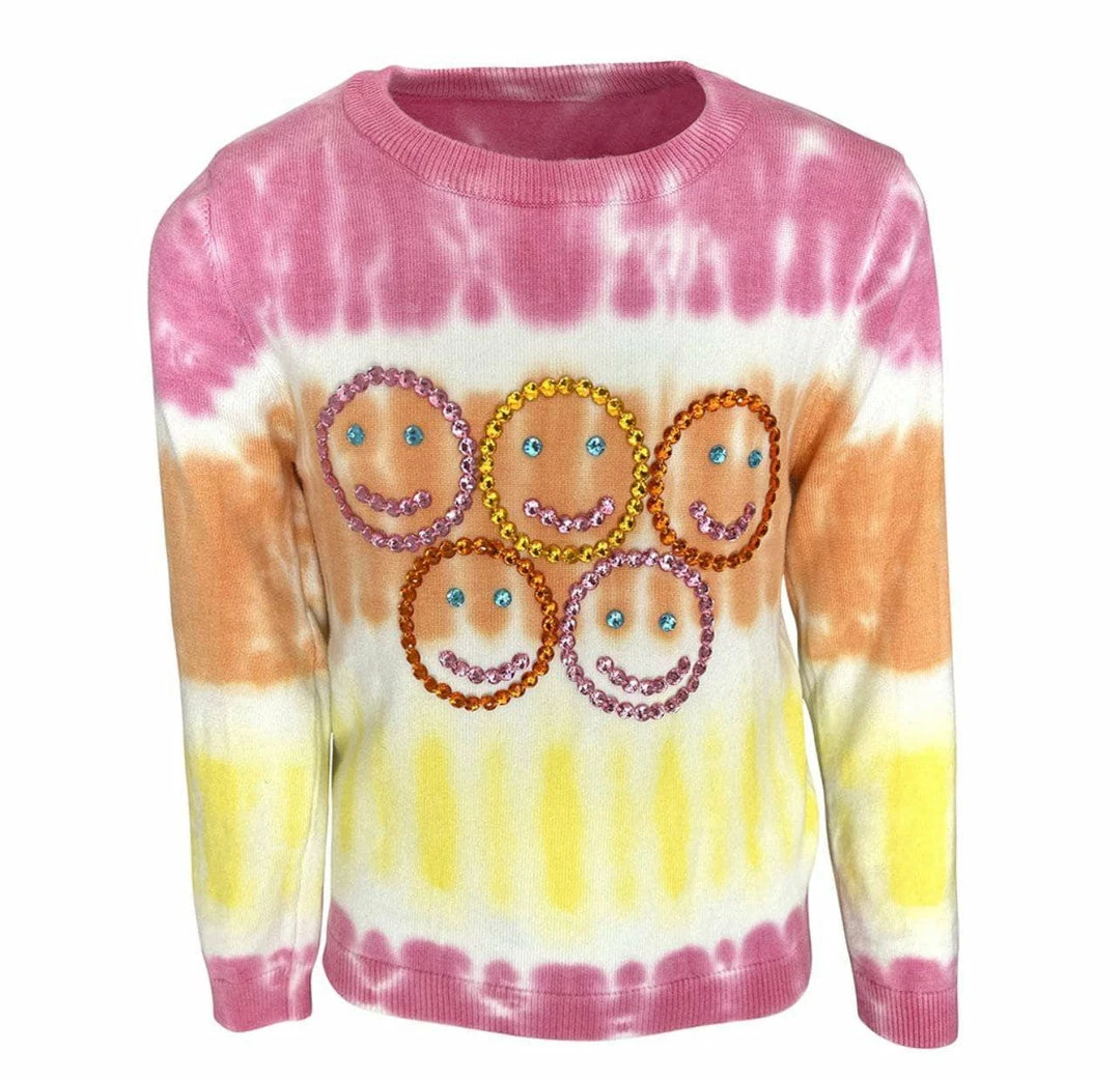 Knit tie dye sweater adorned with 5 crystal smileysÂ